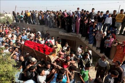 spokesman for Hamas, Fawzi Barhum, who at the sentence added, "The more coordination is safety (with Israel) more killed our people" and urged the PA to "free the hand of the resistance in the West Bank to end the Israeli aggression. Israel only wants to end the Palestinian resistance. " ANP: Finally the sentence came from the premier of the PA, Salam Fayyad, saying "the Israeli policy of assassinations which result in undermining the efforts of the ANP." International Community: The outside world remained silent and address this crime. Photo: Hundreds of Palestinians on the house demolished by the occupying power to kill Sweiti, looking stunned the martyr's corpse covered in a red blanket. <*>